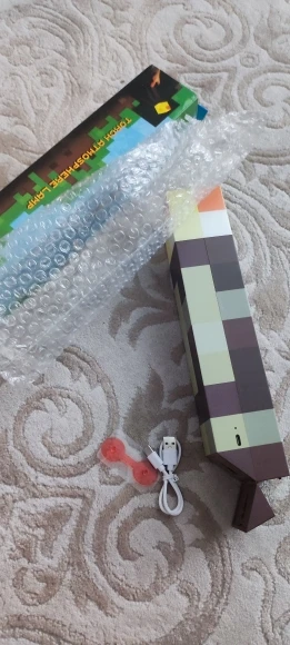 Lámpara LED estilo Minecraft con efecto llama. Táctil, recargable por USB y ideal para ambientes gamer o como luz nocturna